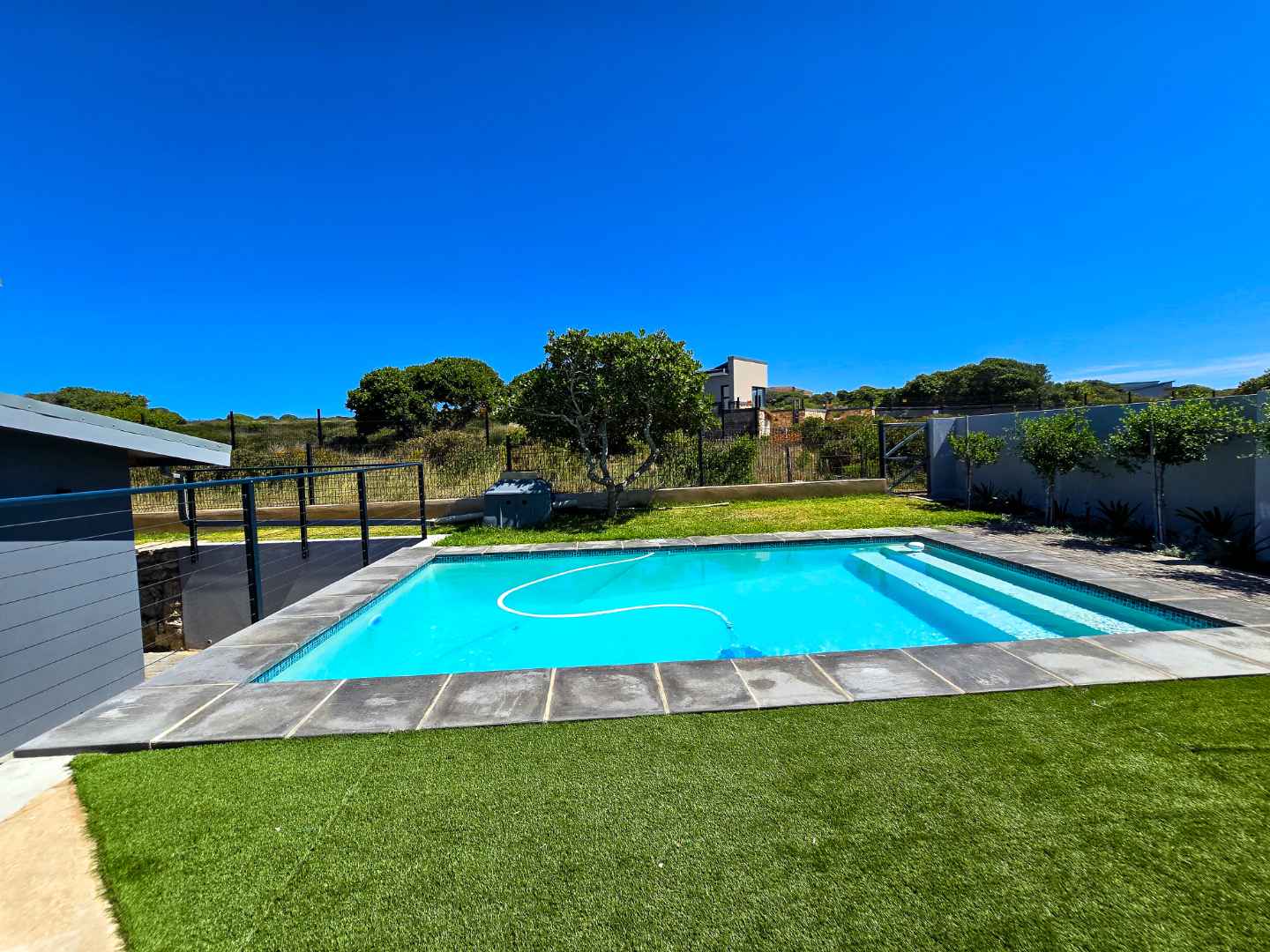 An inviting sparkling blue swimming pool, where your family can enjoy hours of fun.