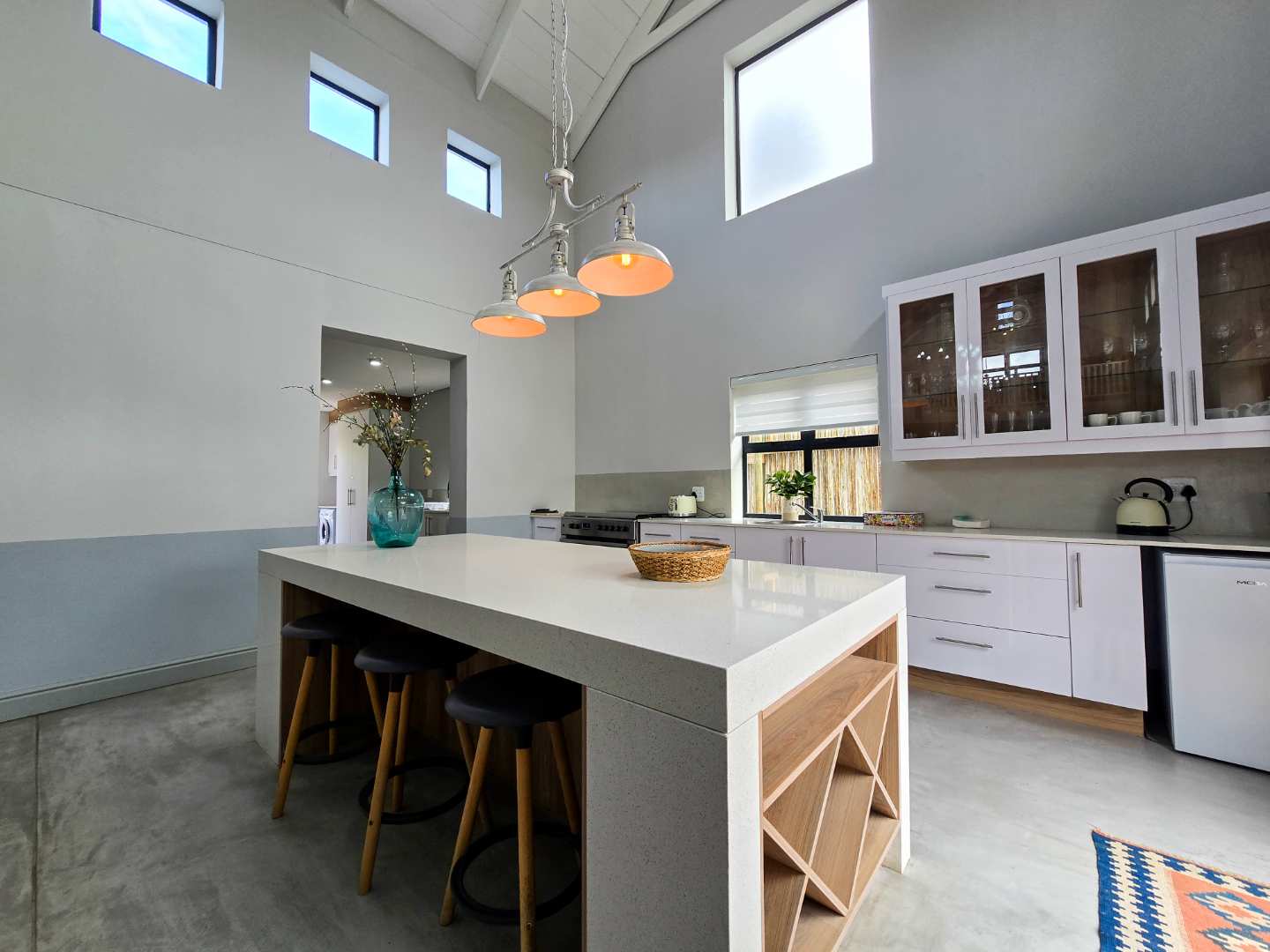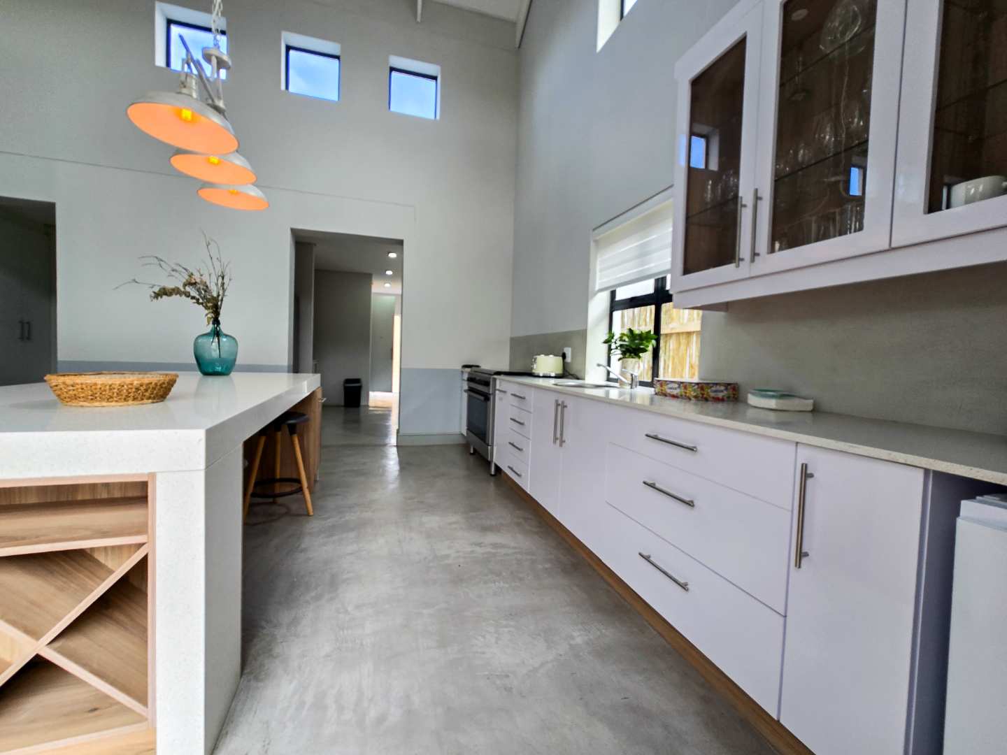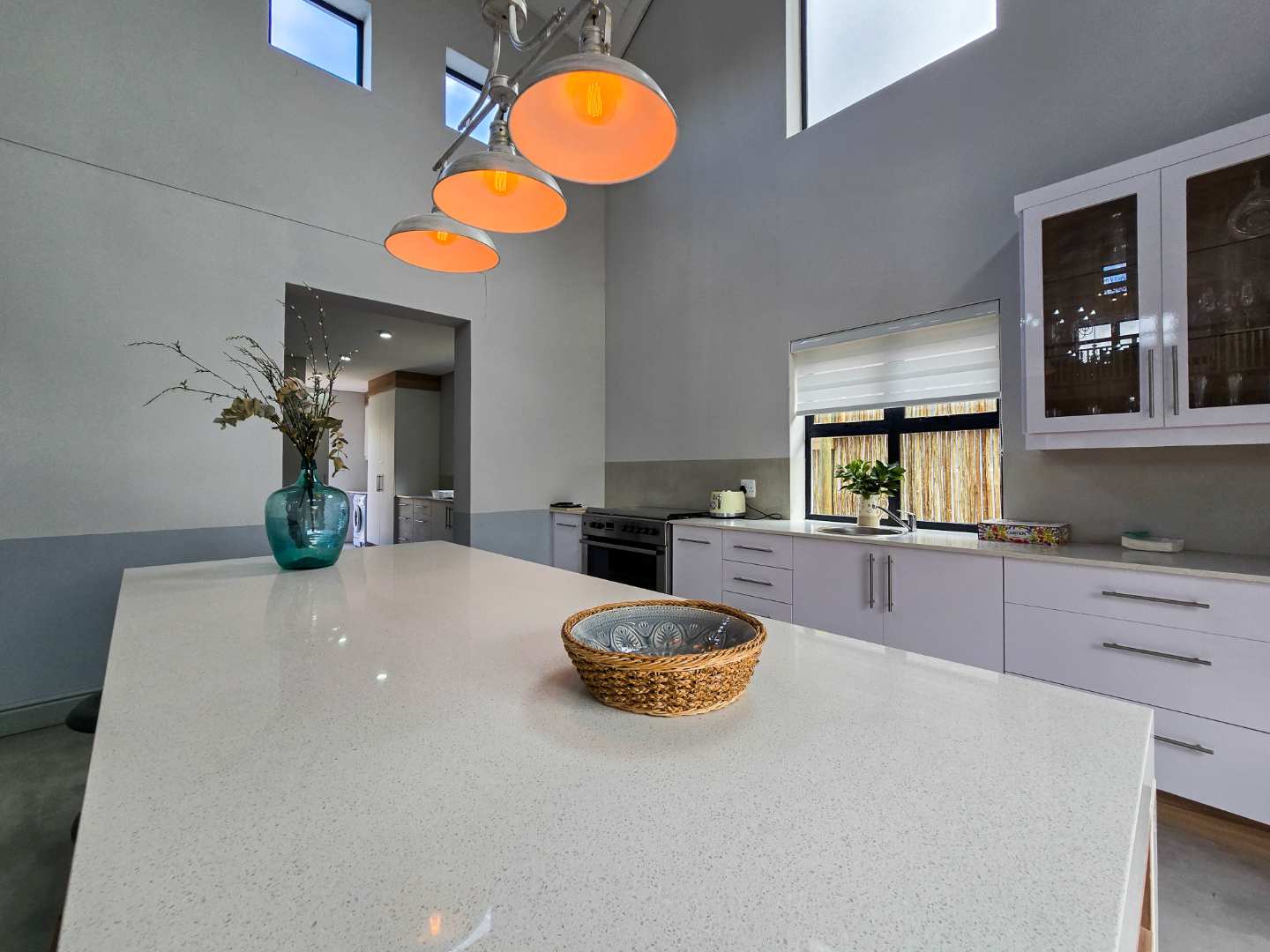 The modern kitchens is a show stopper, with luxurious finishes and ultra modern design, the kitchen is any home chefs dream. Offering ample cupboard space as well as a spacious laundry/scullery area.