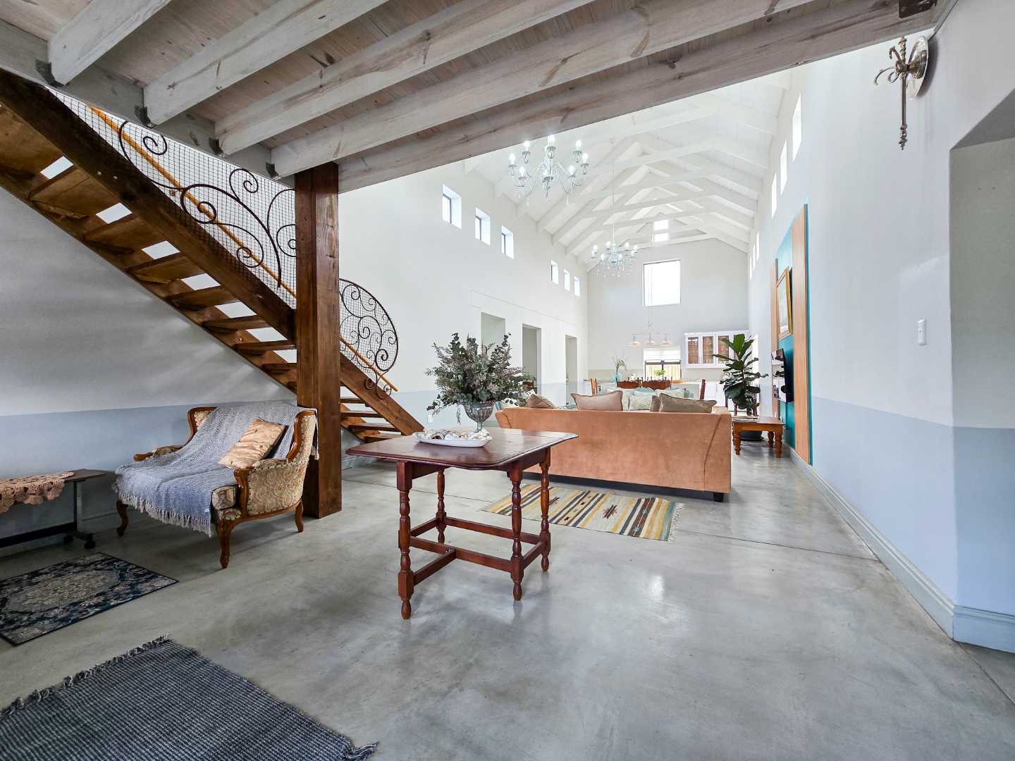Inside, the home boasts open-plan layouts that create a sense of space and flow. High ceilings and large window flood the interiors with natural light.