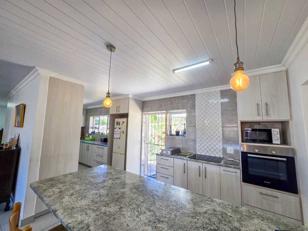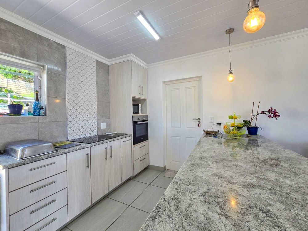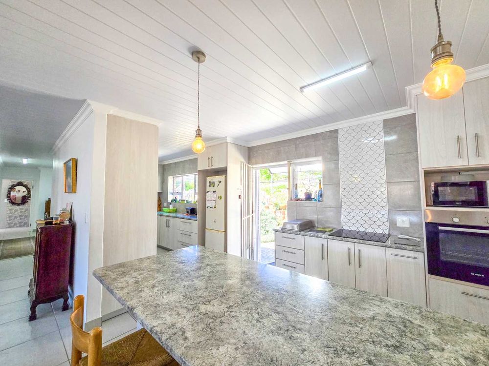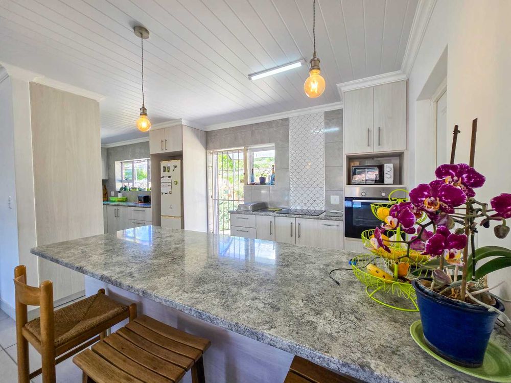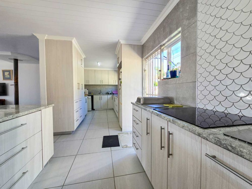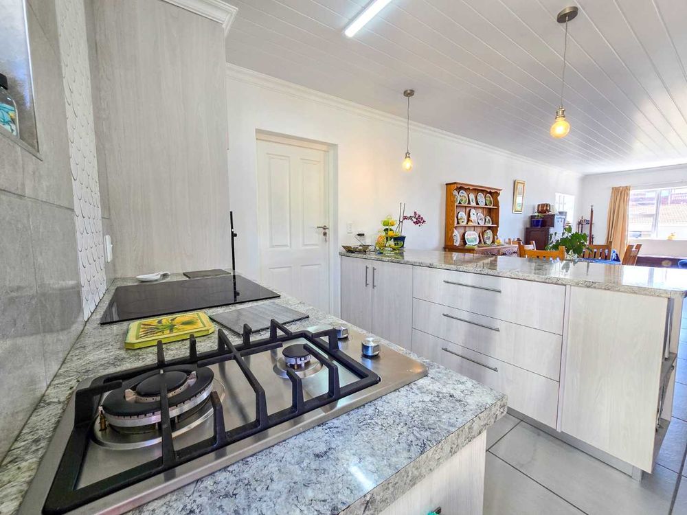 The open-plan kitchen is designed with ample storage space and comes equipped with a gas and electric hob, complemented by a convenient breakfast nook and modern design. And a small laundry area for additional functionality.