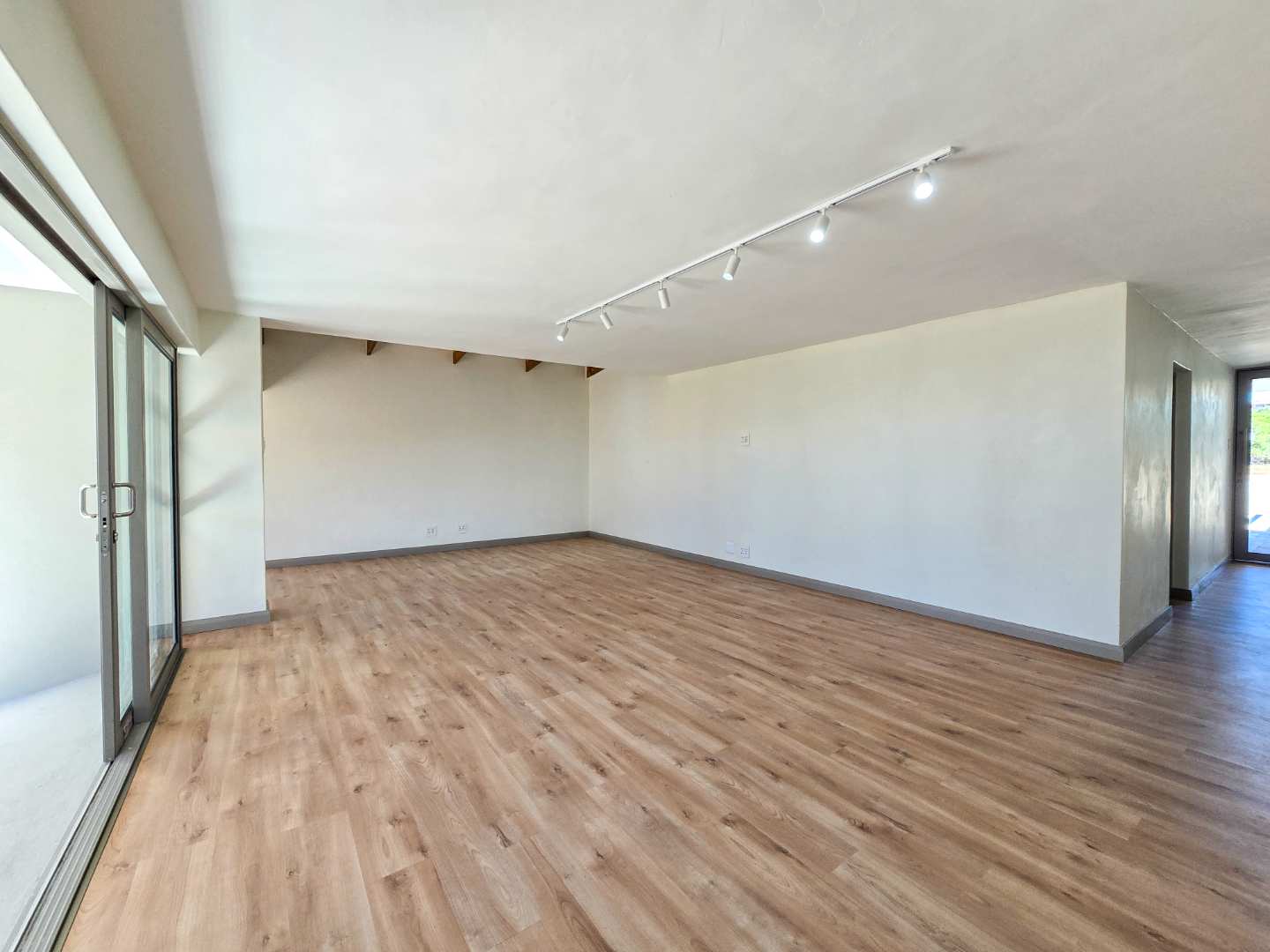 Large sliding doors throughout the living spaces invite the outdoors in, opening onto a private courtyard designed for relaxation and entertaining.