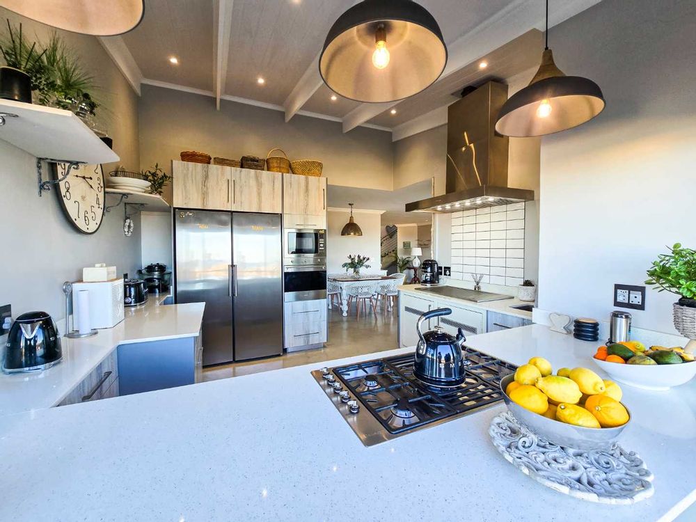 Wake up each morning to the soothing sound of waves and panoramic ocean views from your dream home in Stilbaai. Nestled in the sought-after Stilbaai Duine Estate, this beautifully designed 230 m2 residence combines relaxed coastal living with the peace of mind that comes from estate security.