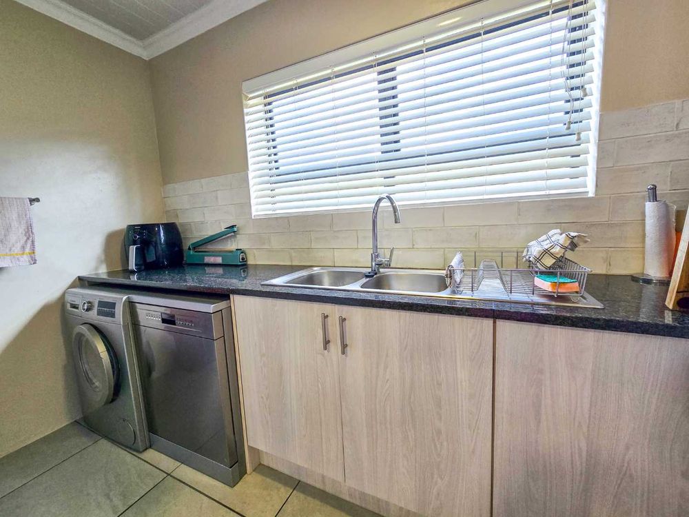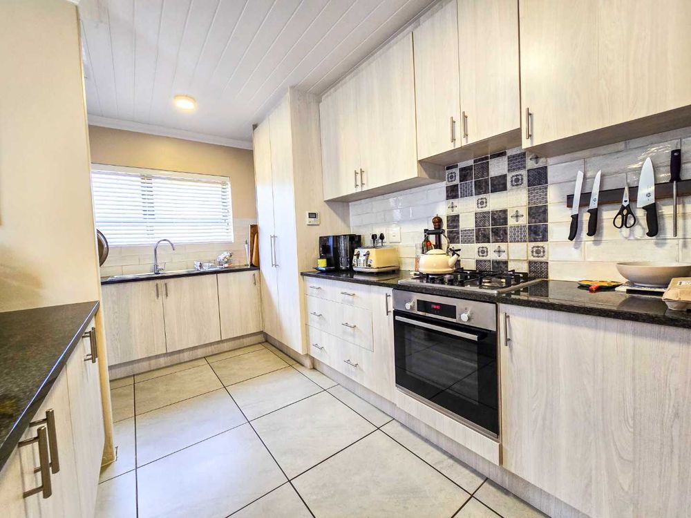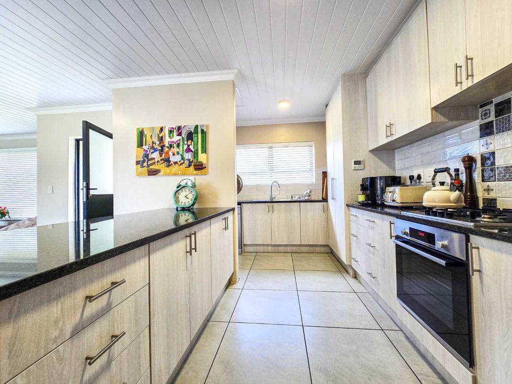 - Modern kitchen with granite countertops and scullery area.