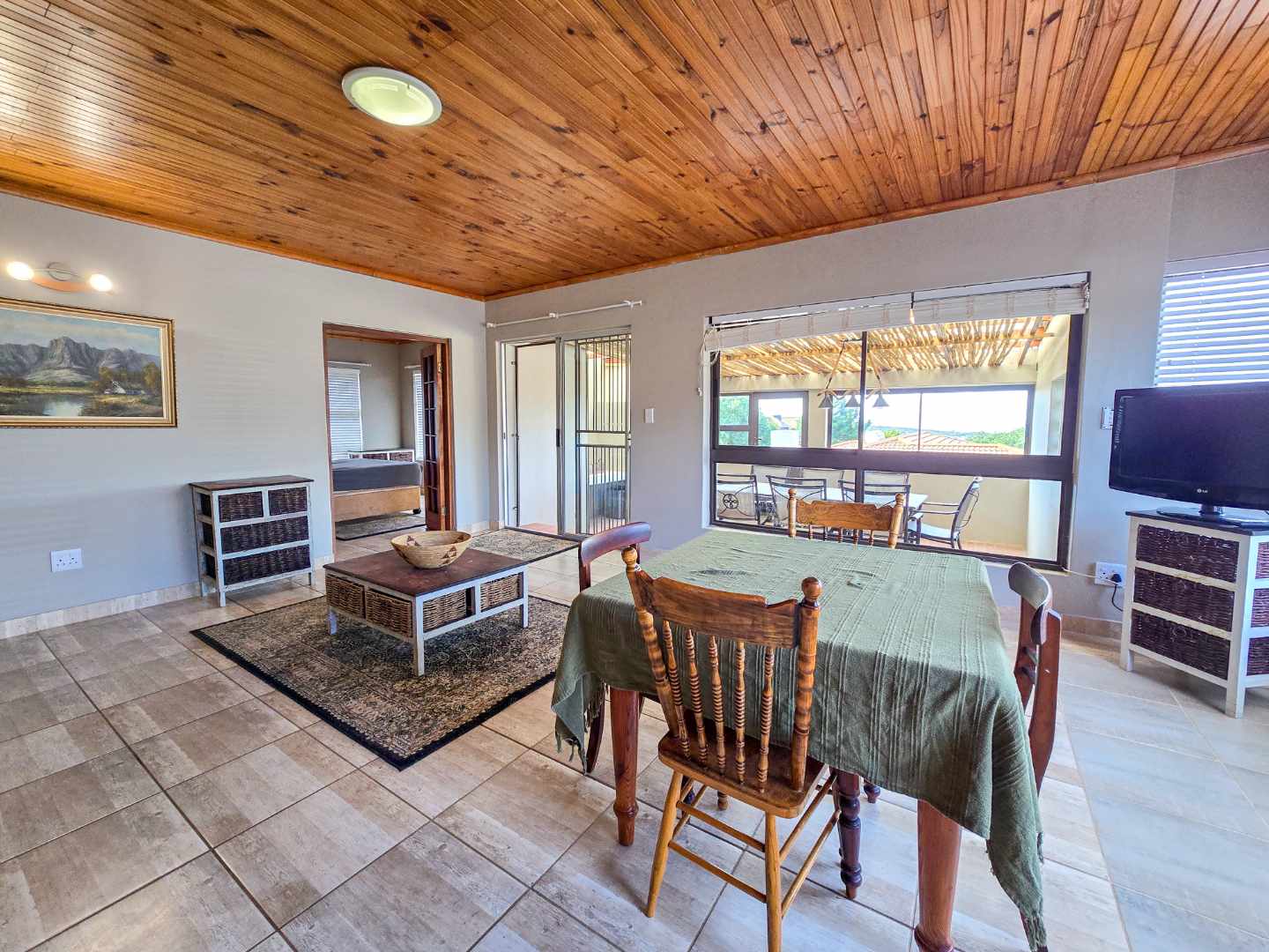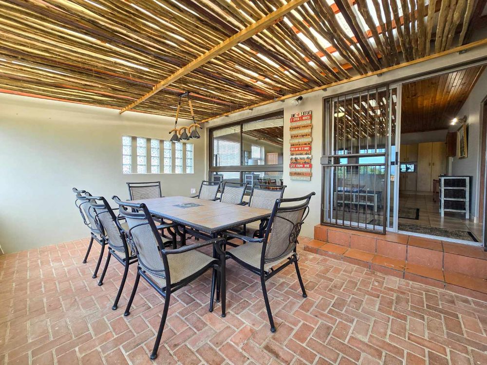 The patio area offers a sea view over Stilbaai and is completely enclosed and perfect to entertain family and friends, even on windy days.