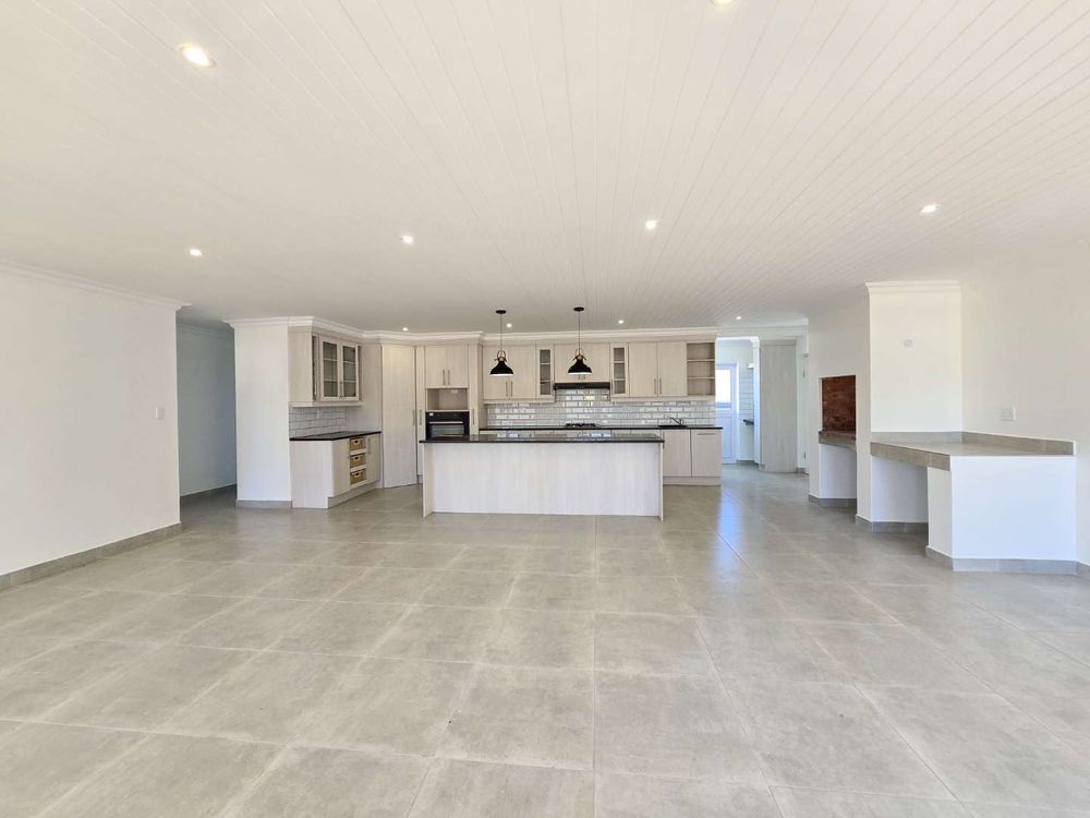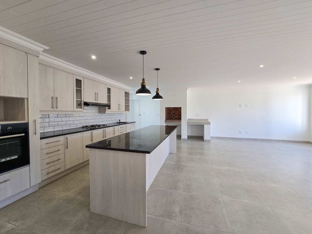 Designed with effortless entertaining in mind, the home features spacious, light-filled open-plan living areas flowing seamlessly into an indoor braai area — the ultimate space for hosting family and friends all year round. The modern open-plan kitchen is beautifully finished and includes a separate scullery/laundry area, ensuring both functionality and contemporary appeal.