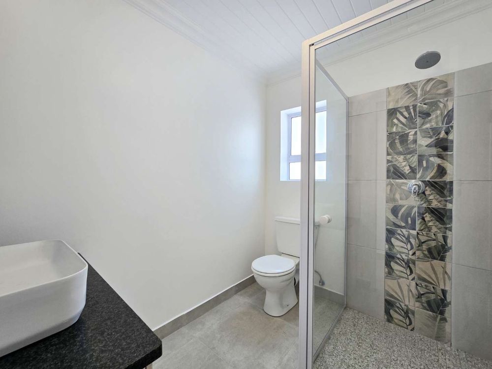 Property includes three generously sized bedrooms, two of which offer built-in cupboards. The main bedroom boasts a luxurious en-suite bathroom, while a second ultra-modern full bathroom services the remaining bedrooms and guests. Each space has been thoughtfully designed to create a comfortable and relaxing atmosphere.